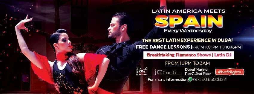 ‘Latin America meets Spain’ tendrá lugar en el restaurante Mexicano Ocacti, situado en Pier 7, Dubai Marina (ver localización), y se prolongará desde las 22.00 horas hasta las 3 de la madrugada.