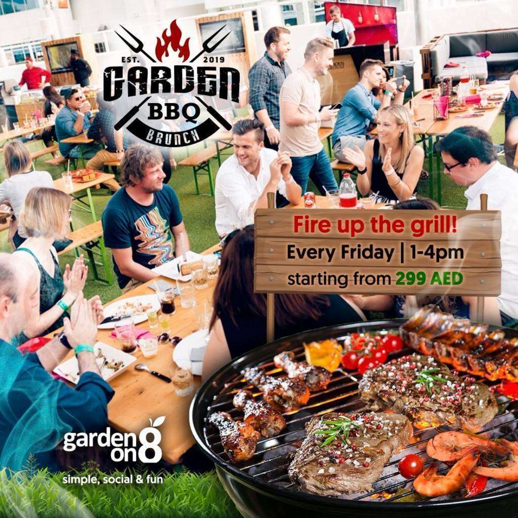 Garden BBQ Brunch se celebra todos los viernes de 13.00 a 16.00 horas a partir de 299 AED por persona, incluidas las bebidas de la casa.