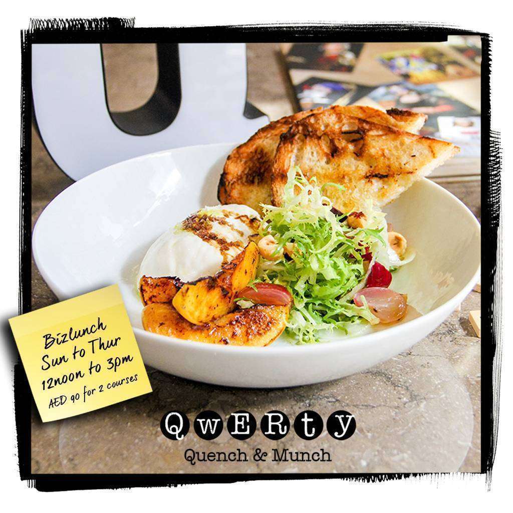 Qwerty BizLunch se encuentra disponible de domingo a jueves de 12.00 a 15.00 horas por solo 90 AED incluyendo té o café.