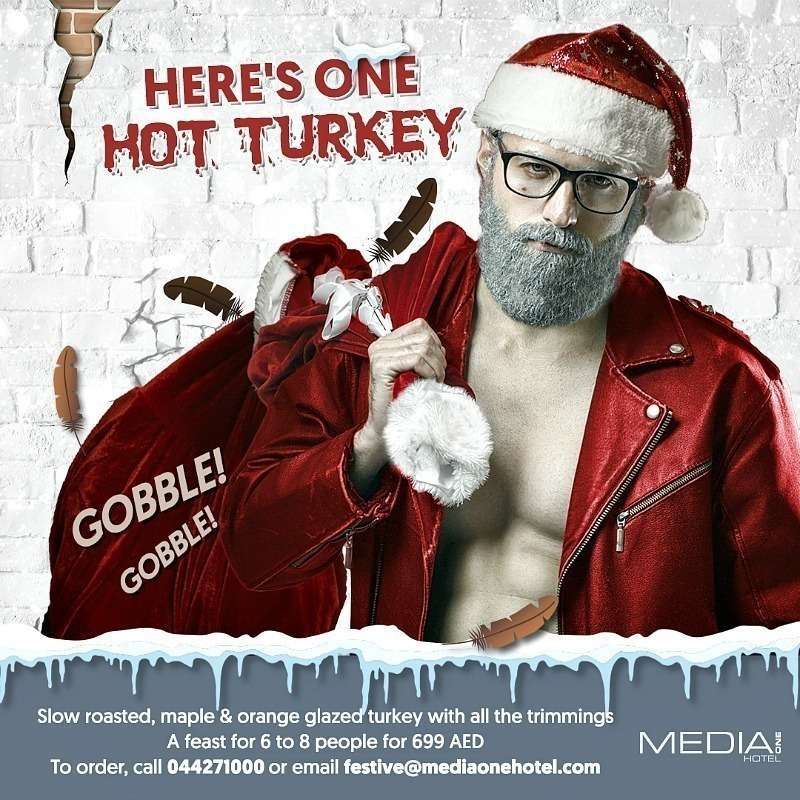 En el hotel Media One de Dubai (ver localización) ya se vive la Navidad con toda intensidad. Dentro de las numerosas ofertas que han lanzado con ocasión de las fiestas se encuentra una que hay que tener muy en cuenta: sirve extraordinarios y deliciosos pavos cocinados para disfrutar con las mejores propuestas culinarias en este tiempo navideño. El pavo para llevar a casa del hotel Media One es para seis u ocho personas y además va con suculentos acompañamientos. Hay que encargarlo con tres días de antelación enviando un correo electrónico a festive@mediaonehotel.com o llamando al teléfono 04 427 1000. ¡¡Pídelo ya y olvídate de estar esclavizado a la cocina durante las fiestas!!