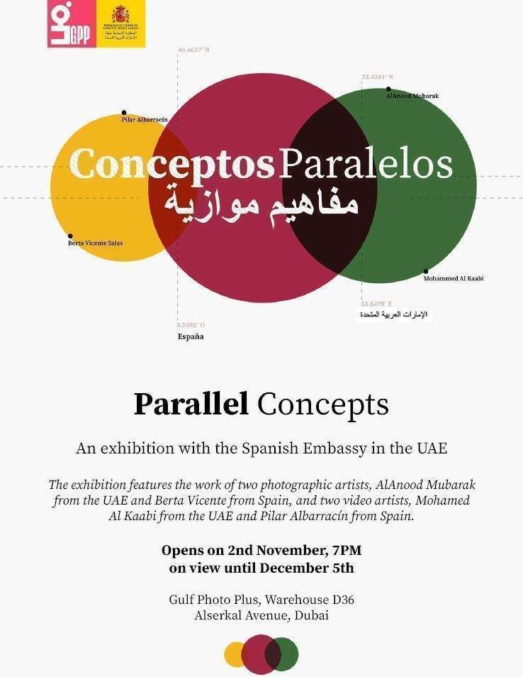 Tiene lugar en Gulf Photo Plus Dubai, situado en Alserkal Avenue (ver localización), y lleva por nombre 'Conceptos-Paralelos en España y EAU'. La muestra presenta el trabajo realizado por artistas emiratíes y españoles en los últimos meses en torno a la visión existente en cada uno de los dos países sobre determinados aspectos culturales y sociales.