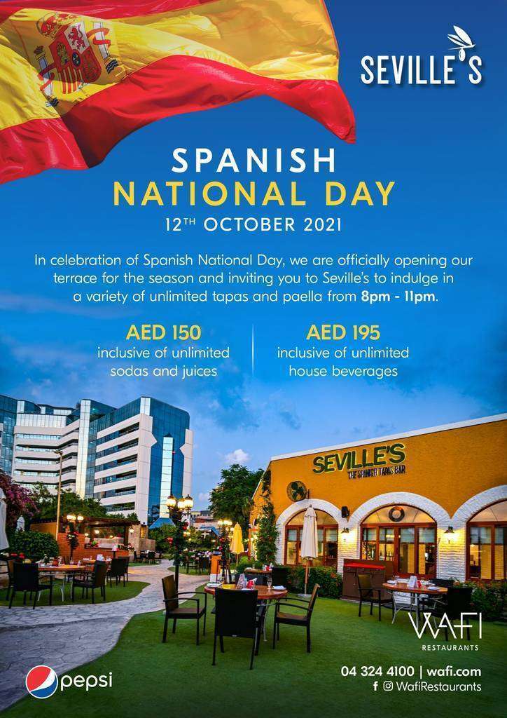 El Seville's celebrará en Dubai el Día Nacional de España este 12 de octubre por todo lo alto. Con la Exposición Universal 2020 a toda marcha, el restaurante español con más solera de Emiratos Árabes Unidos (EAU) ha organizado un gran encuentro que se desarrollará de 20.00 a 23.00 horas y que además supondrá la inauguración de su espectacular terraza en esta nueva temporada.
