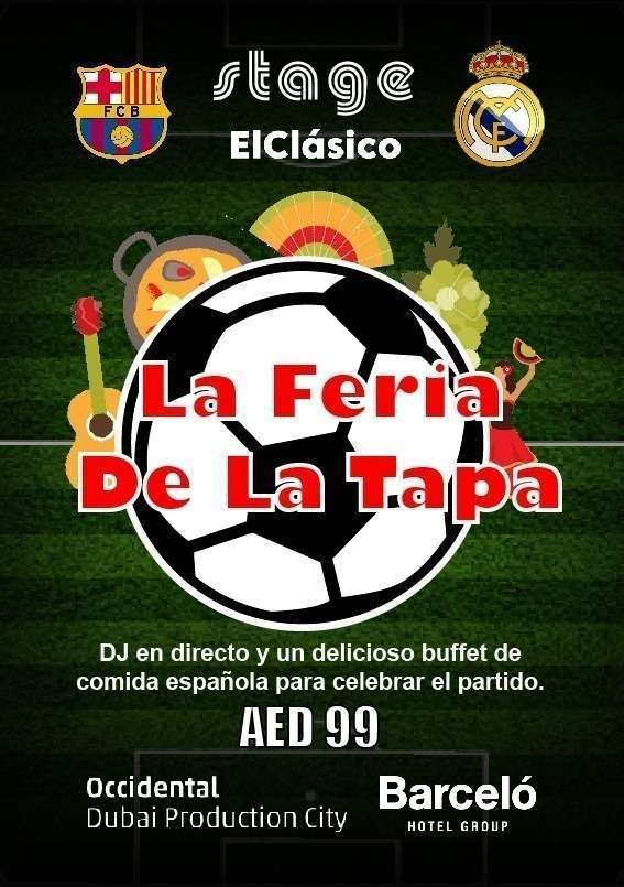 El hotel Occidental Dubai Production City (ver localización) no sólo ofrecerá El Clásico el sábado 24 de octubre a las 18.00 horas en Champs Sports Bar, donde habrá bebidas gratis para quienes acudan vistiendo la equipación del Real Madrid o Barcelona, además ha preparado una gran fiesta tras el encuentro en Stage Sky Lounge.
