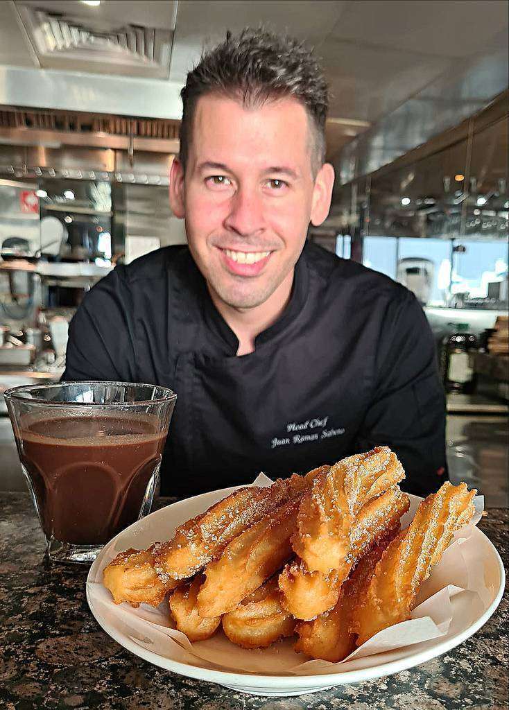 Casa de Tapas, el conocido restaurante español situado en Dubai Creek Golf (ver localización), acaba de emprender una nueva etapa con el chef Juan Ramón Sobero al frente. Y la Chocolatá es una de sus primeras iniciativas. Para que todo resulte a pedir de boca se ha empleado a fondo. Hasta el punto de que ha traído desde España todo lo necesario -incluida una máquina- para elaborar churros tradicionales, que hay que subrayar además que son veganos.
