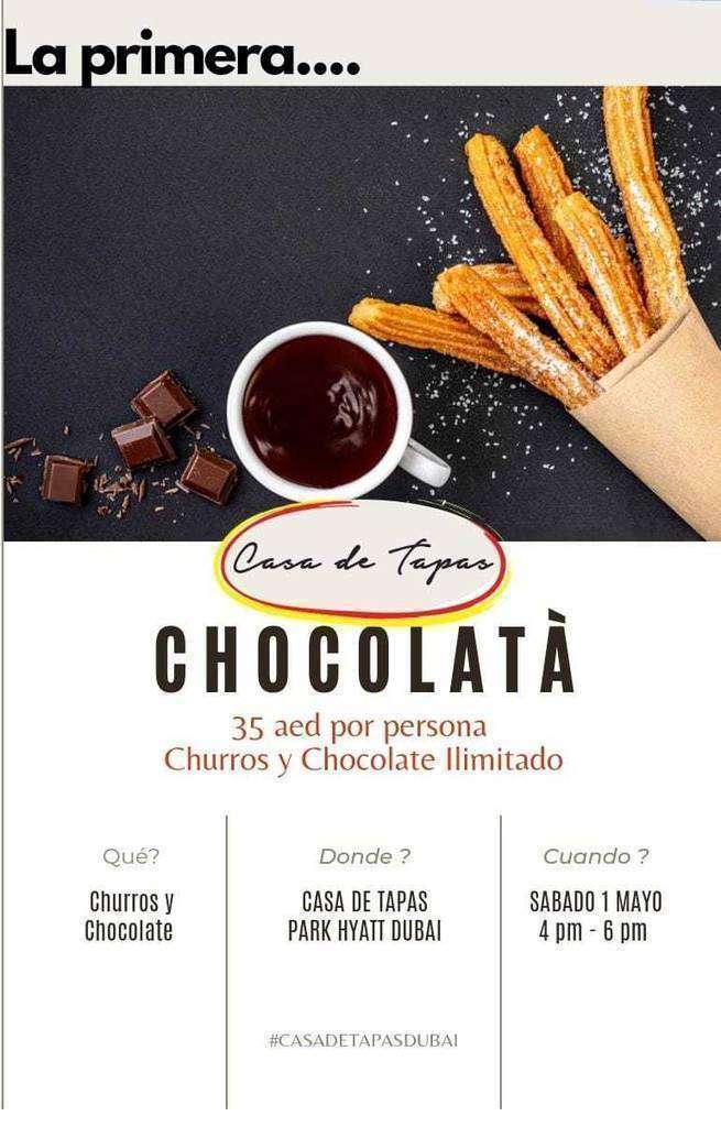 Gran Chocolatá con churros tradicionales ilimitados el sábado 1 de mayo en el Casa de Tapas de Dubai