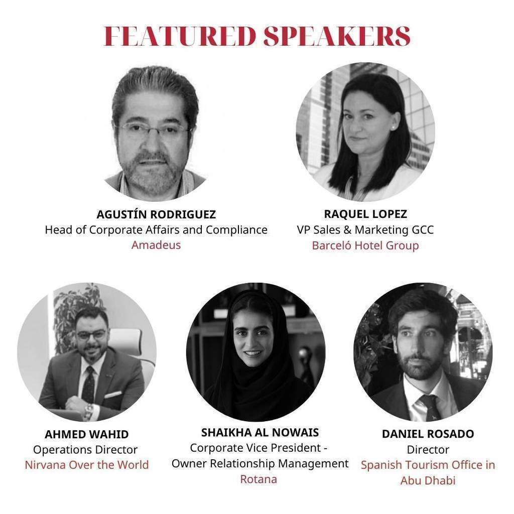 Intervendrán Agustín Rodríguez, responsable de Asuntos Corporativos de Amadeus; Raquel López, vicepresidenta de Ventas y Marketing en el Consejo de Cooperación del Golfo (CCG) del grupo hotelero Barceló; Ahmed Wahid, director de Operaciones de Nirvana Over the World; Shaikha Al Nowais, vicepresidenta corporativa de Gestión de Relaciones de Rotana; y Daniel Rosado, director de la Oficina de Turismo de España en Abu Dhabi.