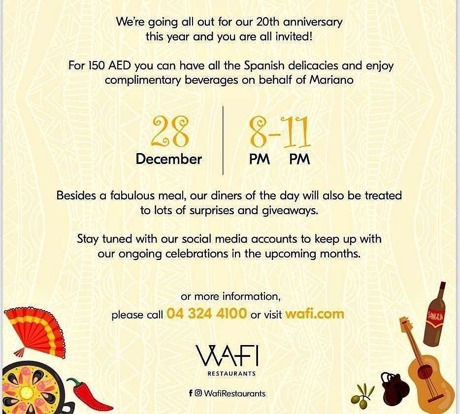 El Seville’s, restaurante español de más larga trayectoria en Emiratos Árabes Unidos (EAU), cumple 20 años el 28 de diciembre y lo va a celebrar como la ocasión lo merece. Mariano Andrés, máximo responsable del establecimiento en su calidad de director general de F&B de Wafi, ha lanzado de forma personal una invitación en la que recuerda que "parece que fue ayer" cuando se inauguró el restaurante con la presencia de Chico Castillo de los Gipsy Kings.