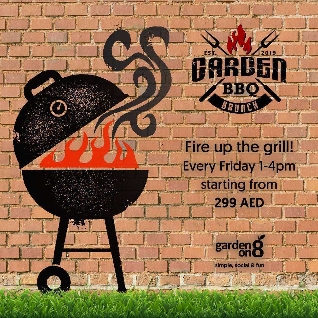Garden BBQ Brunch se celebra todos los viernes de 13.00 a 16.00 horas a partir de 299 AED por persona, incluidas las bebidas de la casa.