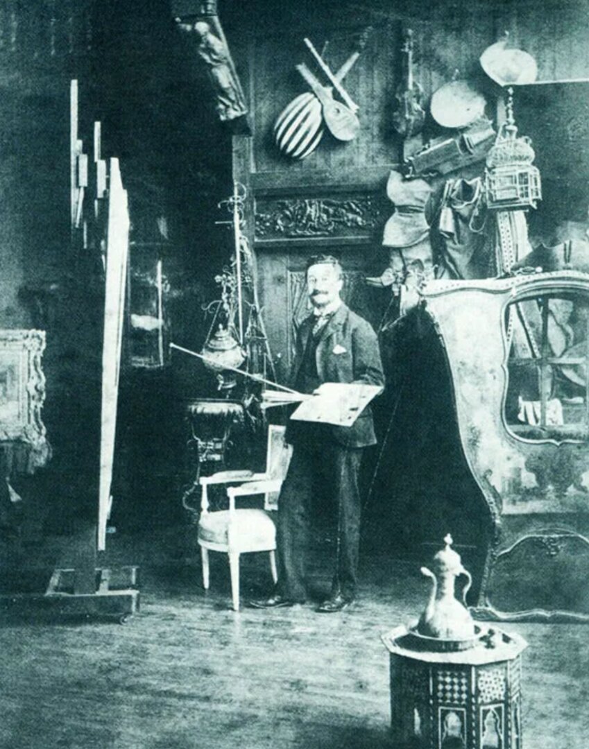 Andrés de Santa María, fue un migrante cultural por naturaleza y vocación. Nacido en Bogotá en 1860, siendo muy niño, su familia se trasladó a Inglaterra de donde pasó buena parte de su infancia y luego su padre fue nombrado Encargado de Negocios de Colombia en Francia, estudió en el Liceo Concorcet y en la Escuela de Bellas Artes de París, en donde fue compañero de estudio de artistas como los españoles Ignacio Zuluaga o Santiago Rusiñol. La vinculación al mundo del arte no fue fácil para el bogotano, porque pertenecía a una familia prestante que le presionó para que fuera banquero, pero pronto se convenció que lo suyo no eran las finanzas sino la pintura.