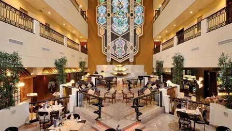 La pared de vidrio brinda una vista clara del Burj Khalifa