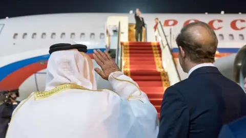 El jeque Mohamed bin Zayed despide al presidente Putin a pie de avión