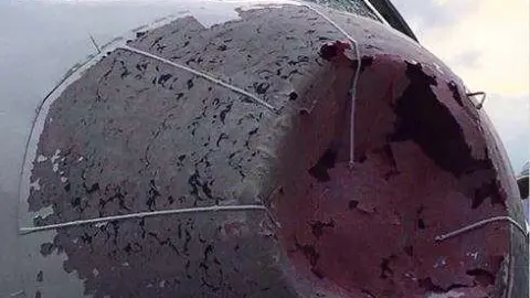 Sociedad Así ha quedado un avión tras una violenta granizada en Estambul Redacción 29/7/17 Solo en dos horas más de 6.000 rayos cayeron sobre la ciudad turca que une Europa con Asia